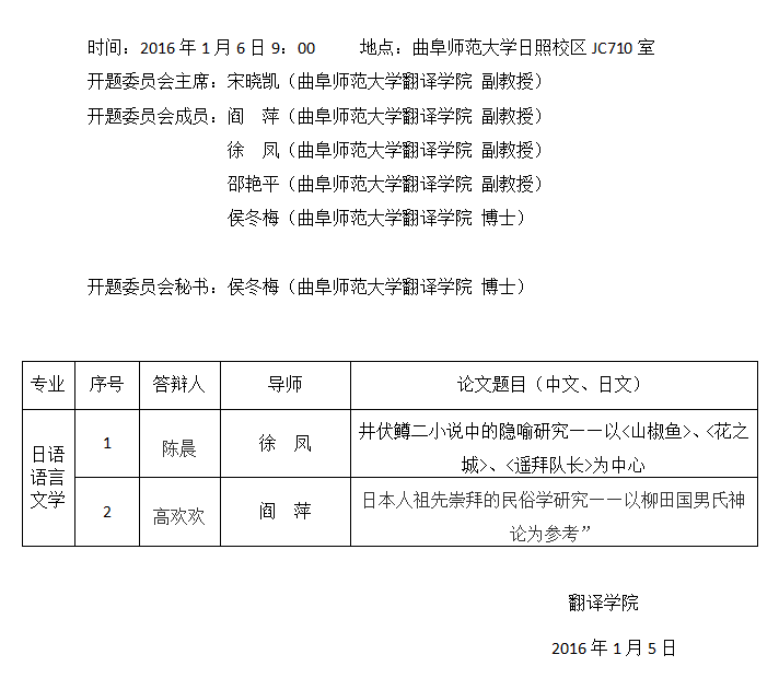 肉漫屋 2014级硕士学位论文开题通知-日语语言文学