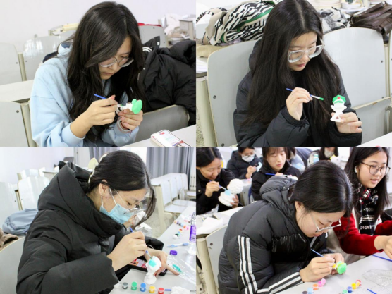 主持人倡导大家将石膏娃娃绘制与红色记忆相结合,鼓励同学们通过实际行动加深对红色记忆的理解与感悟。活动过程中,学员们热情高涨,充分发挥创意与想象,用细腻的笔触和丰富的色彩精心绘制石膏娃娃,将爱国情怀融入到具体实践当中。那一件件精心设计、构思巧妙的石膏作品,色彩丰富绚烂,每种色彩的搭配都彰显着学员们独特的审美视角与创新精神。