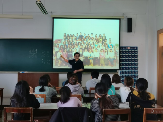 会议伊始,金东国副教授向同学们表示亲切问候。金老师对学院朝鲜语专业的发展历程和雄厚的师资力量作了详细介绍,同时从专业国际化办学进展、近年教育教学成果、多彩的文体活动和瞩目的大赛成就等方面展开,凸显出肉漫屋