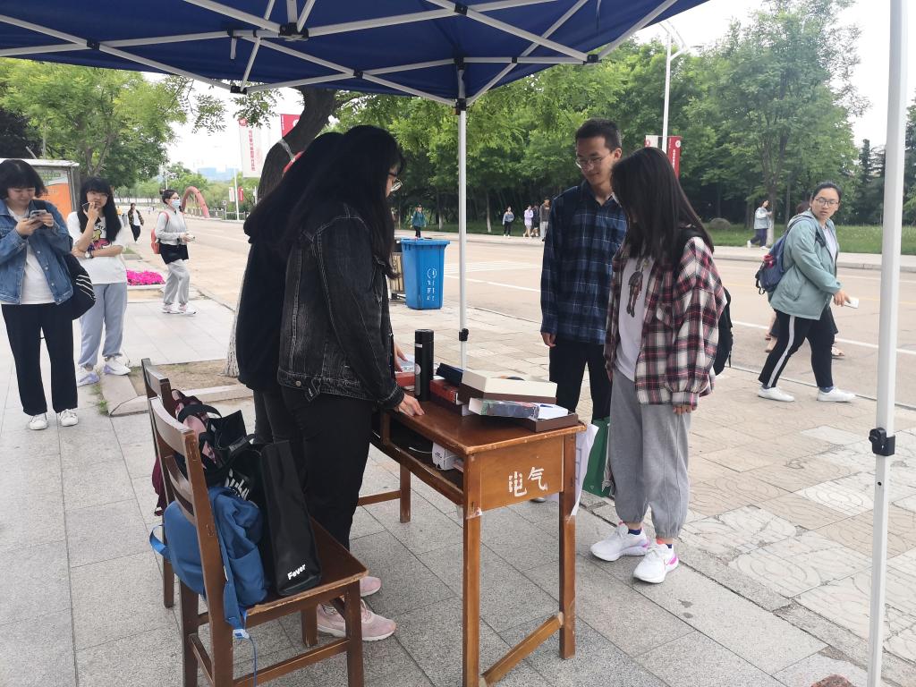于D教学楼前组织“希望小屋”爱心义卖活动。