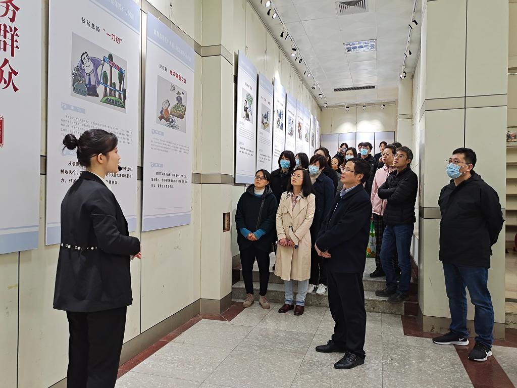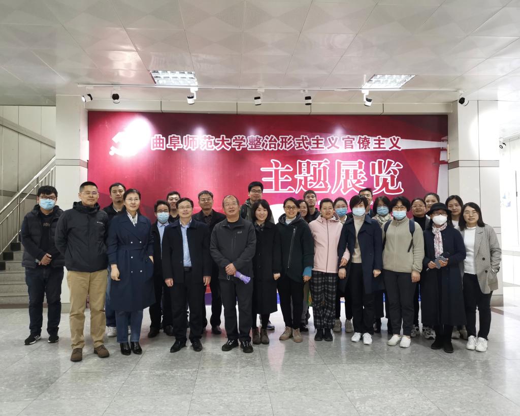 首先,讲解员从“前言”讲起,表明了党中央整治形式主义、官僚主义的决心。在“一脉相承”模块中,讲解员指出从毛泽东同志提出用马克思主义科学方法反对形式主义、官僚主义,到以习近平同志为核心的党中央坚持推进从严治党以正“四风”,都体现了中国共产党整治形式主义、官僚主义理论与实践相结合的特点,做到了一脉相承。“一笔勾画”模块则采用图画的形式对众多典型案例进行了深入剖析,发人深省。在讲解过程中,党支部成员紧跟讲解员的步伐,认真聆听。随后,讲解进入最后一个模块“一以贯之”,该模块以文字展板的形式展出党中央、省委和学校党委在整治形式主义、官僚主义方面的重大事件和主要成就,反映出中国共产党人一以贯之反对形式主义、官僚主义的坚定决心和坚强信念。最后,讲解员呼吁党支部成员要更加紧密团结在以习近平同志为核心的党中央周围,围绕学校党委确定的重点任务,为实现学校高质量发展,建设孔子家乡高水平一流大学不懈奋斗。至此,本次主题展览参观活动在党支部成员热烈的掌声中圆满结束。