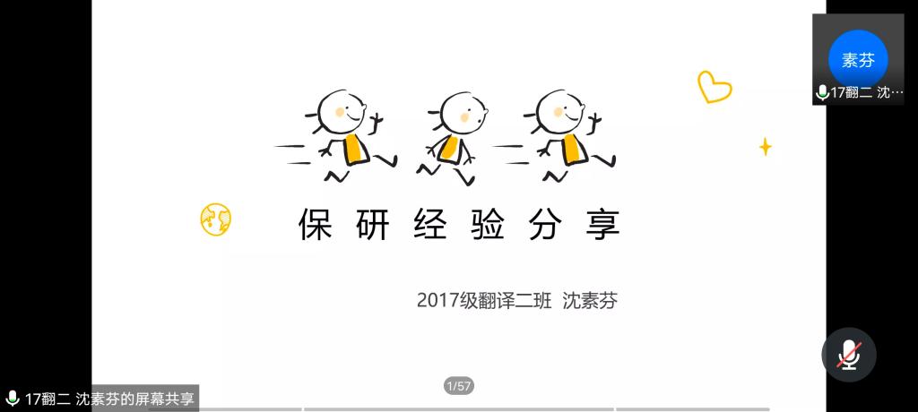 组织开展线上考研经验分享交流会。本次线上考研经验分享会共分为商务英语及翻译、日语、韩语三个会场,分别由2017级四个专业的优秀学子分享考研经验。