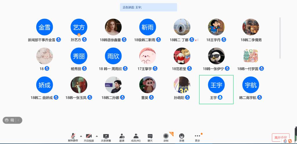 韩语考研经验分享会由2017级三位优秀学子王宇,王擎宇和胡乔倪进行经验分享。王宇和王擎宇同学从保研的条件、流程、准备、建议方面分享了自己的考研建议,并推荐了考研相关的公众号及参考资料。同时胡乔倪线上演示了如何查询硕士招生相关信息,补充并总结了考研相关问题的解答。最后三位同学集中答疑并给予了考研同学鼓励。