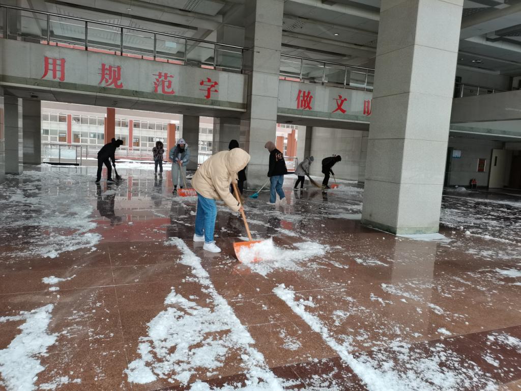组织党团员、学生干部开展“扫雪除冰当先锋”志愿服务活动。