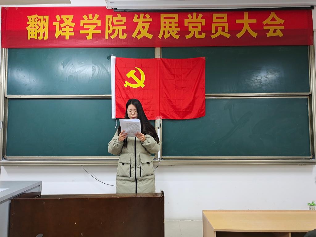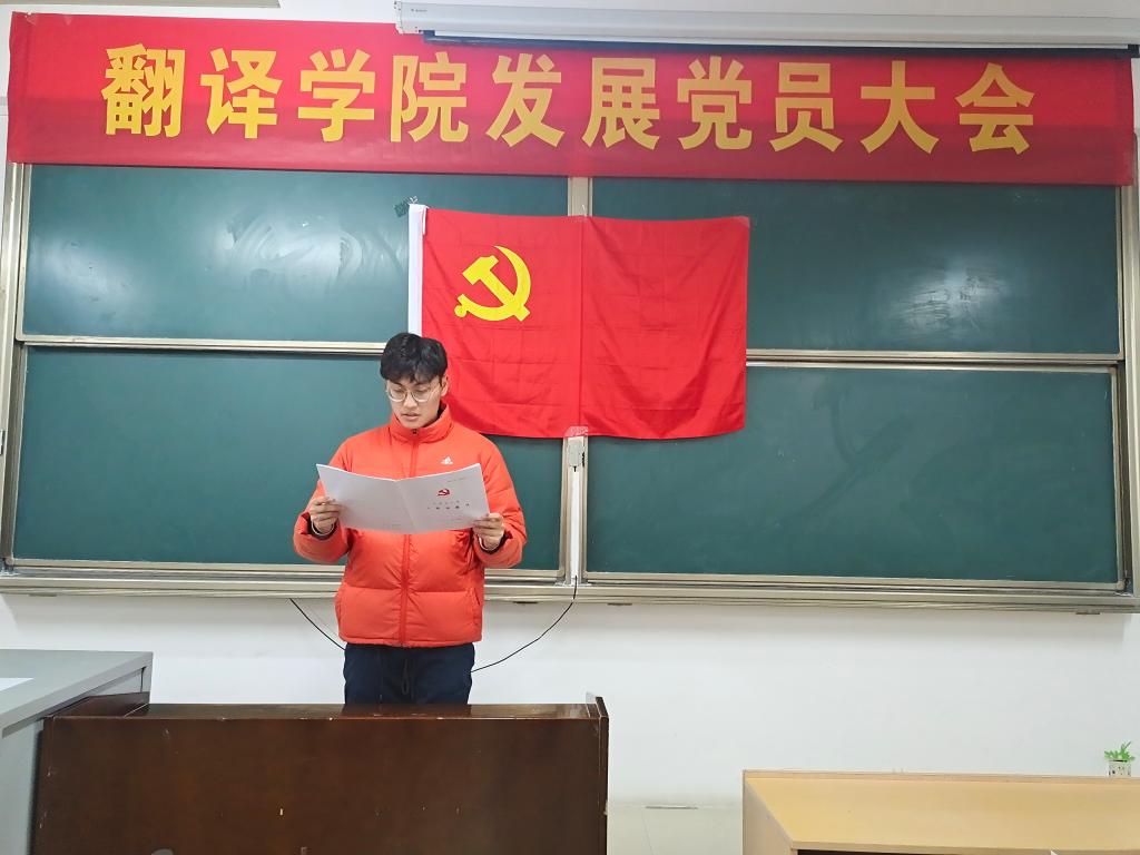 会议伊始,董家忠同志清点到会人数,介绍大会议程,宣布开会。按照组织发展党员程序,胡乔倪等35位发展对象依次宣读《中国共产党入党志愿书》,向大会汇报了自身对党的认识、入党动机和态度决心。入党介绍人依次宣读了对发展对象的介绍意见,到会党员也实事求是地发表了各自意见。王峰同志逐一向大会汇报发展对象的政审报告。