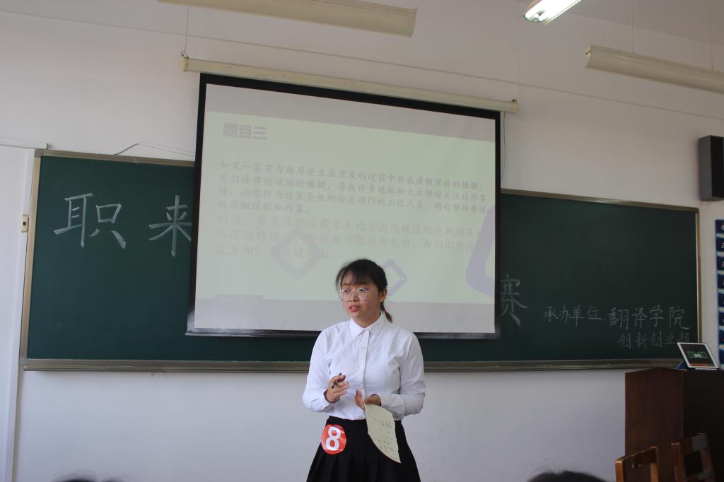 在主持人对此次比赛进行简单介绍后,比赛正式开始。第一个环节为三分钟的自我介绍。第二个环节为现场作答,每位选手随机抽取问题并作答,评委进行现场提问并评分。