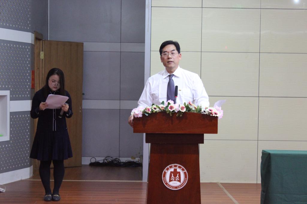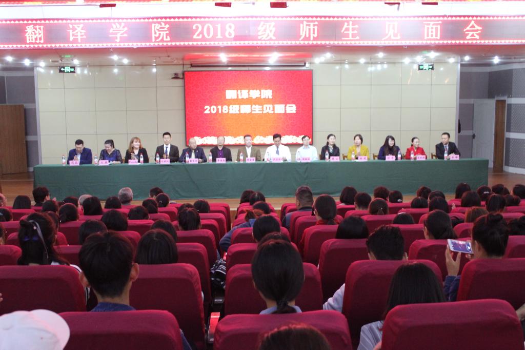 2018级师生见面会于图书馆报告厅举行,院党委书记李金雷、院长卢卫中教授、博士生导师李德高教授、语言与脑科学研究中心主任周统权教授、院党委副书记董家忠、副院长夏云教授、副院长宋晓凯副教授、工会主席徐凤副教授、团委书记岳峰等学院领导和教师代表出席见面会,本次见面会由党委副书记董家忠主持。