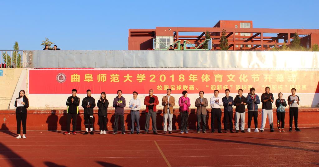 2018年体育文化节暨校园足球联赛、“迎新杯”篮球赛、“迎新杯”排球赛开幕式于西操场举行。体育教学部副主任杨弢教授,学生工作处姜振栋副教授,体育教学部足球教学研究室主任刘刚老师、篮球教学研究室王哲老师、排球教学研究室桑勇老师以及部分学院党委、团委书记出席了本次开幕式,参加开幕式的还有各学院的运动员们。
