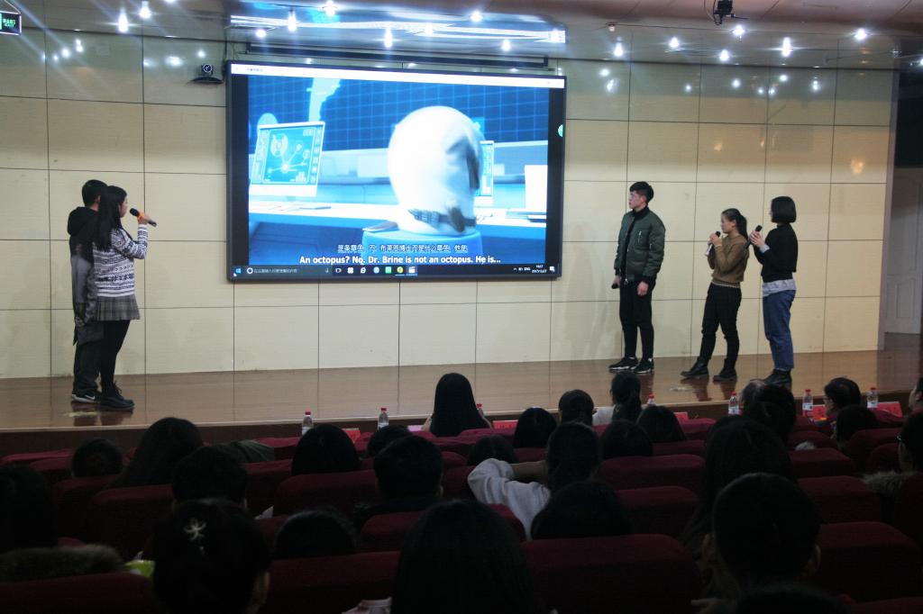 为调动我校学生学习外语的积极性,活跃我校的学习氛围,12月27日晚7:00,由海英剧社承办的英日韩配音大赛决赛在图书馆报告厅举行。出席本次大赛的嘉宾及评委有肉漫屋