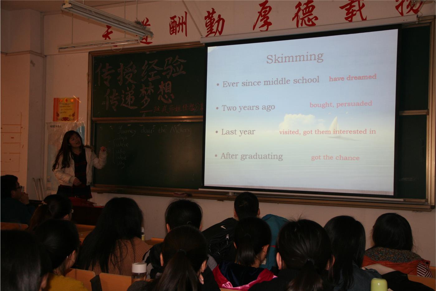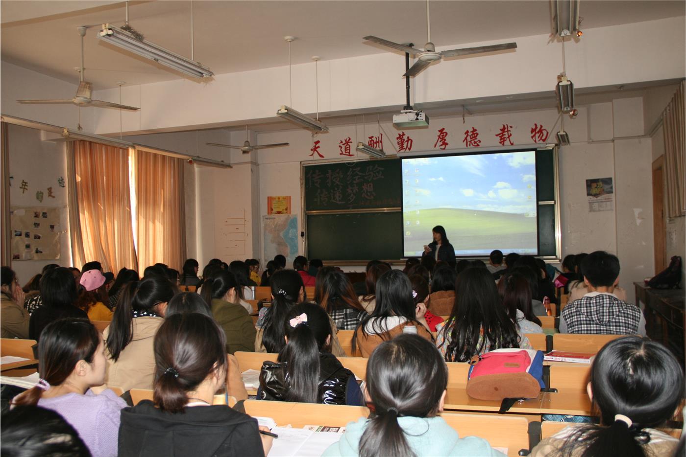 团总支副书记刘翔、学生会主席王绪良、学习部部长闫继昌、宣传部部长张仕慧等出席了本次讲座,12级英语师范专业全体学生参加了讲座。