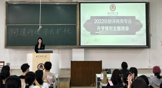 分别开展升学规划主题班会及线上考研经验分享会,邀请我院2021级优秀考研学子分享经验心得,2022级翻译、商务英语专业本科生积极参与。
