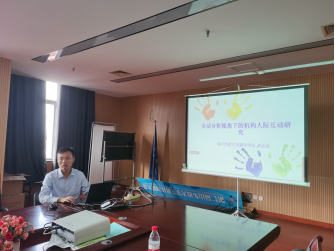 最后,武宜金博士以“会话分析视角下的机构会话研究”为题做主旨发言。武博士探讨了会话分析方法对机构性谈话开展实证研究的方法和理论依据,对会话分析中的重要概念进行介绍,并辅以机构会话语料分析。