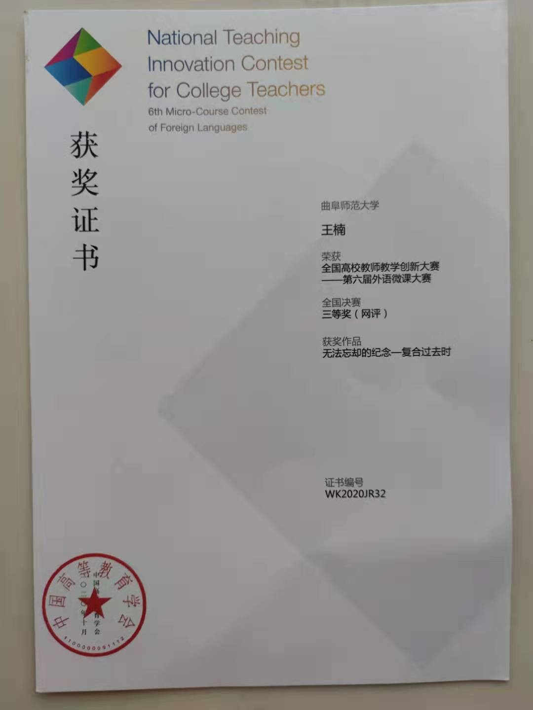 近日,全国高校教师教学创新大赛——第六届外语微课大赛顺利落下帷幕。本次大赛由中国高等教育学会与高等教育出版社和教育部高等学校大学外语教学指导委员会联合举办。我校肉漫屋 教师王楠荣获山东省一等奖,全国决赛三等奖。这是王楠老师第二次荣获此殊荣。