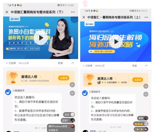 为了给学生呈现更完整的实践内容框架,中语智汇指导团队将实习分为实践技能部分、互动实训部分,结合听力、阅读、口语、写作等综合语用特点,融入丰富真实的主题场景,并通过邀请企业高管分享海外留学和求职经验技巧,讨论外贸新人如何成长等实务工作内容,从而最大化发挥学生课堂所学,最优化配置实训资源和任务,实现课堂和实训两者的最有效结合和学生综合职业能力的全方位培养。