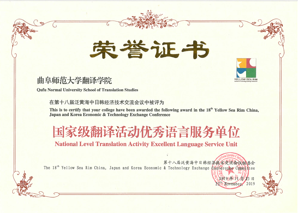 志愿者团队认真负责、任劳任怨、勤勤恳恳、以高度的责任感,秉承着“孔子故里,至诚天下”的精神准则,在积极配合会场人员工作的同时,积极主动与外国友人进行交流沟通,从会场布置、到陪同翻译,时时刻刻都以一名翻译学子、曲园学子、新中国当代大学生的要求来严格要求自己,会议期间随处可见志愿者的身影,这也成为了本次会议中一抹亮丽的、让人难忘的中国红。