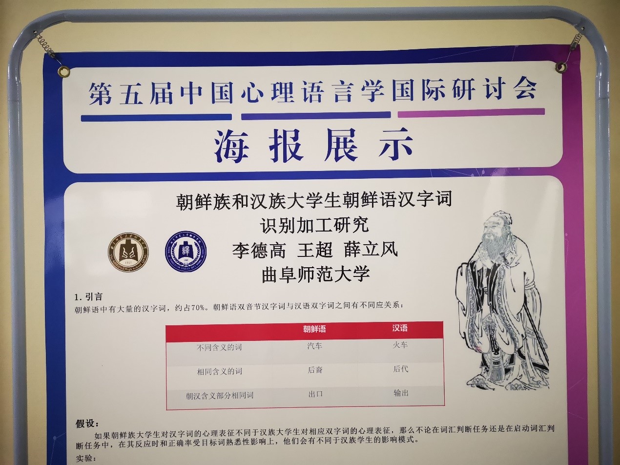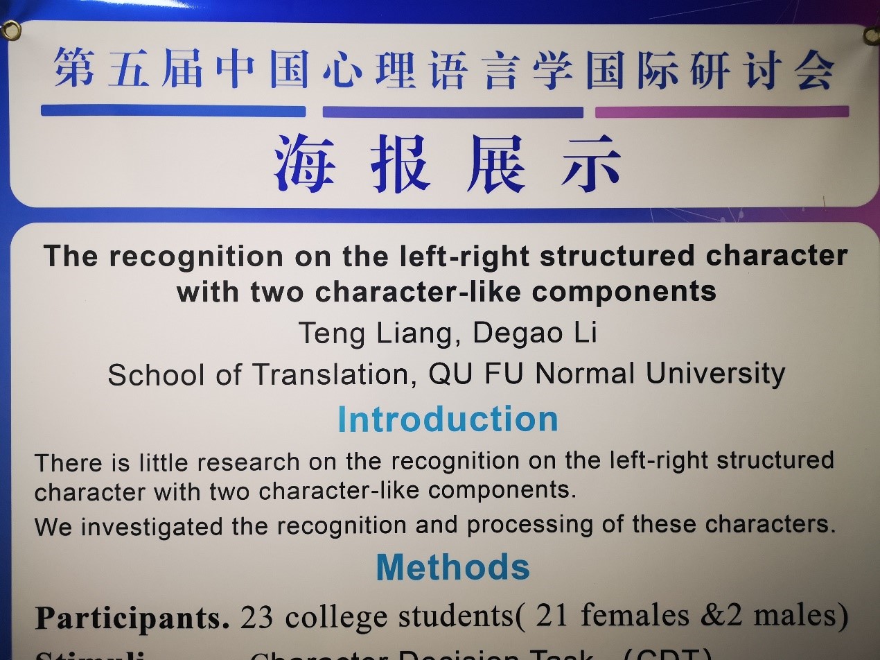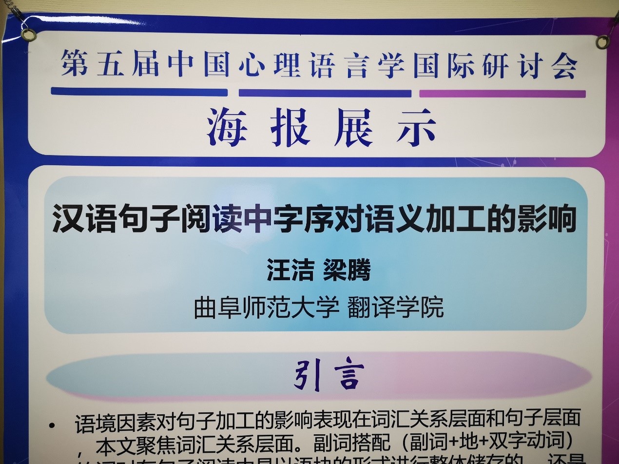 分会场上,我院的在读博士生薛立风就“维吾尔族大学生汉语双字词间的语义联系意识”研究作了汇报,其实验设计和研究成果获得了在场专家的一致认可。此外,语言与脑科学研究中心其他成员的文章也获墙报展示。我院近年来在相关领域的研究成果日益丰硕,眼动技术和ERP技术也日趋成熟,为国内的心理语言学发展做出了一定贡献,也获得参会专家的高度认可。