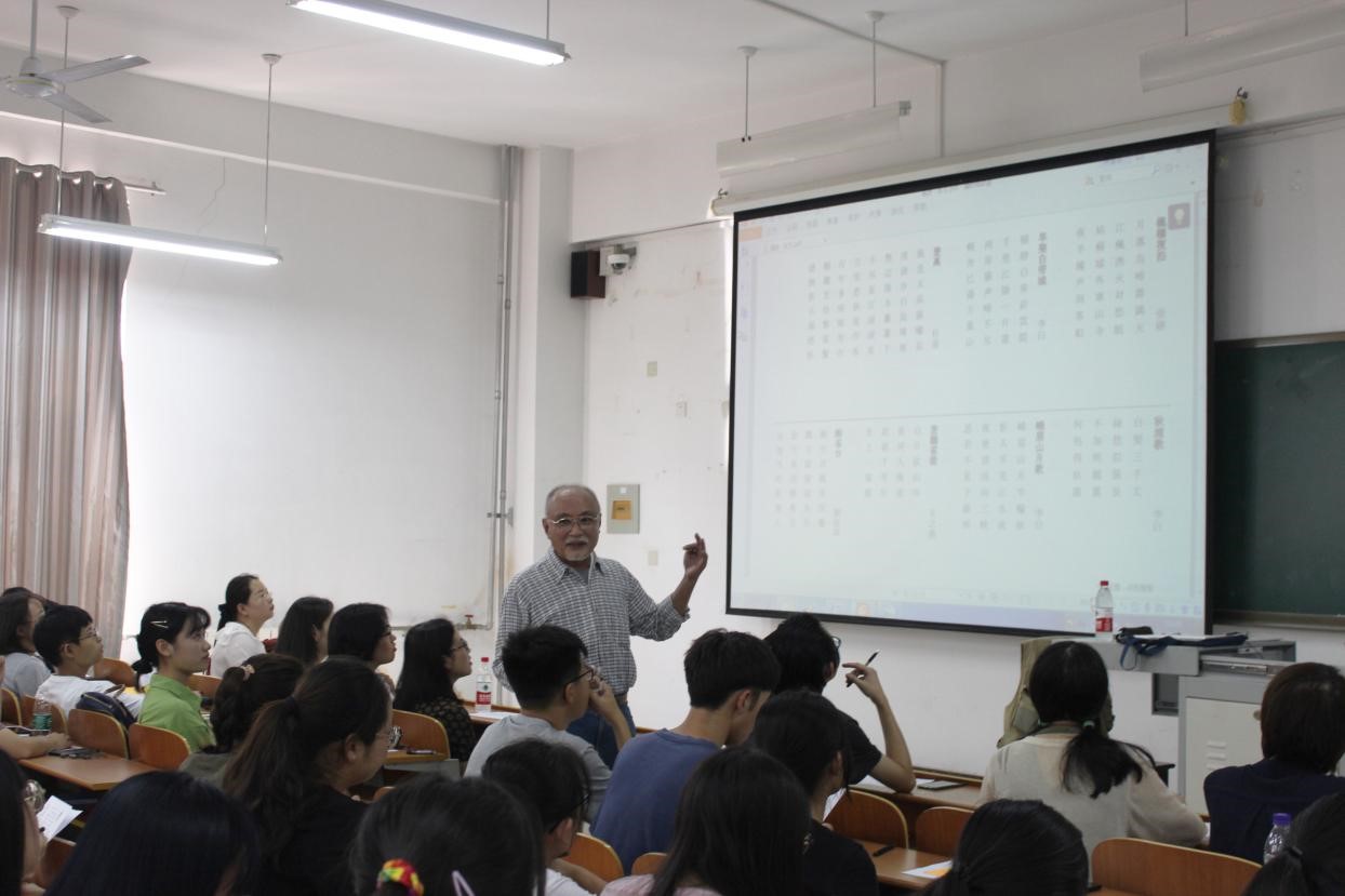 山口老师首先向我们讲述了汉字和中国传统文化传入日本的漫长过程,以及当时日本人对中国传统文化的尊重和热爱。字里行间中无不透露着山口老师丰富的知识以及对中国文化的热情。其次,从全新的角度解读了中国古诗词。先以一种别于之前古诗的读法,加入日本音律重新演绎唐诗,给大家带来了一种全新的听觉体验。随后,深入古诗意境,以探寻诗中实景之法,加入山口老师亲自走遍古诗中的景观精心拍摄的照片,带大家真切地领悟唐诗中那只可意会不可言传的神秘意境,为大家带来了别样的视听感受。山口老师多角度,宽领域的讲解令人深思。全体同学认真聆听,收获良多。