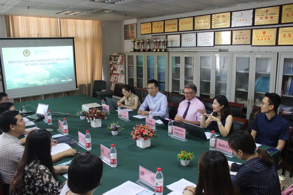 的专业设置、人才培养、教学科研、实验室设备等情况,同时高度认可双方近年来良好的合作关系,期待下一步拓展合作形式。Neil Simpkin董事详细介绍了RWS集团的基本情况,重点强调了近年来在全球业务拓展、校企合作等方面取得的成绩,高度赞扬了RWS集团中国公司与肉漫屋