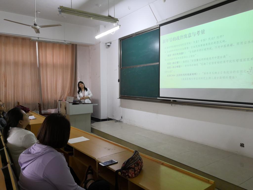 ,为学院师生做了题为“日本的新年号‘令和’”的学术报告。报告由日语系主任邵艳平副教授主持,日语系部分教师、2016级、2017级、2018级本科生聆听了此次报告。