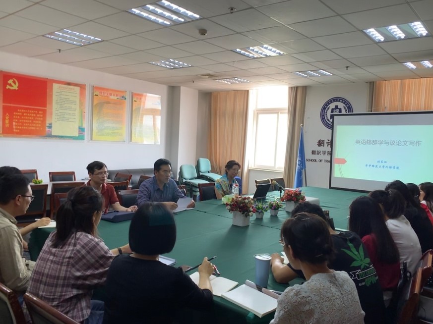刘教授首先为大家介绍了古典与现代修辞学理论如何指导议论文写作,以及写作与修辞学无法割裂的关系,然后指出了英语议论文写作中常见的修辞问题,强调了提高修辞意识的重要性。最后以一项比较修辞学的研究实例,展示了写作修辞学领域的研究。