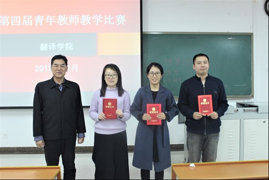 比赛伊始,学院副院长宋晓凯副教授致辞,并介绍本次比赛规则。此次比赛共有七位青年教师参加,每位教师分别进行30分钟的授课。比赛过程中,高远老师依托课件展示,结合板书内容,通过众多口译实例,将专业知识转化为通俗易懂的内容。秦艳老师声情并茂讲解的同时,不忘与学生进行密切的互动,充分调动起“模拟课堂”的热烈气氛。王楠老师采用了新的教学理念,有意识地突出学生在教学中的主体地位,在转变教师角色等方面作了有益的尝试。经过激烈的角逐,高静、孙晓兰、吕金燕和姜坤四位老师获得二等奖,王楠、高远、秦艳三位老师获得一等奖,并将代表学院参加学校第九届青年教师教学比赛。