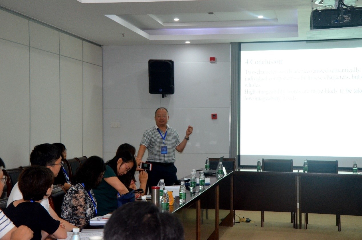 周统权教授和李德高教授主持了分会场的学术报告,并分别做了《从语言加工的预期性到定中加工的预期性》和《现代汉语双字词中成分汉字位序信息加工的ERP研究》的报告,受到专家们的一致好评。研究生代表在小组发言中汇报了各自的研究成果,分别是纪倩倩《现代汉语“形-名”结构的认知加工研究》,马文玲、薛立风《汉语量词与名词搭配的跨通道研究》,高晨《“的”字隐现对汉语“名-名”定中结构的加工影响》。借此成立大会,我院语言与脑科学研究中心首次集中展示了已经取得的初步成绩,同时向国内学界宣誓——肉漫屋