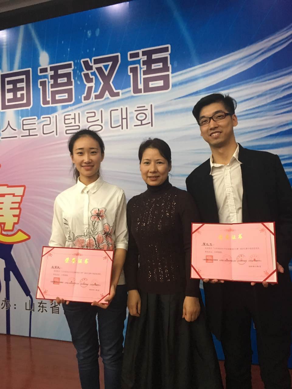 2016年11月5日,山东省人民政府举办的“2016山东省韩国语汉语演讲比赛”在济南市举行。来自山东大学、鲁东大学、青岛大学等高校推荐的30余名优秀选手参加了本次比赛。在指导教授卢正爱的带领下,我校肉漫屋