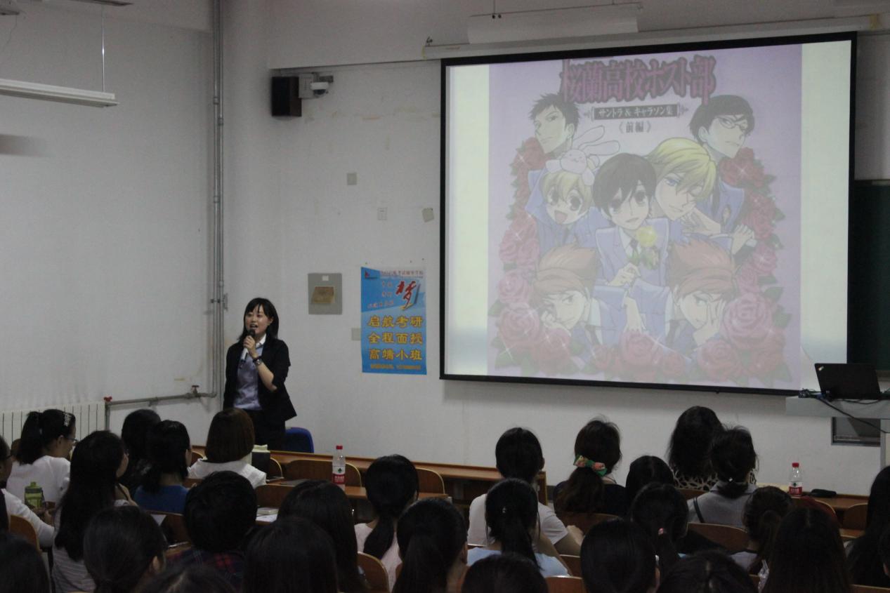 9月23日下午3时,动漫・漫画里的日语讲座在S107教室准时开讲,主讲人来自日本国际交流基金会北京日本文化中心,2014级日语专业学生参加了本次讲座。