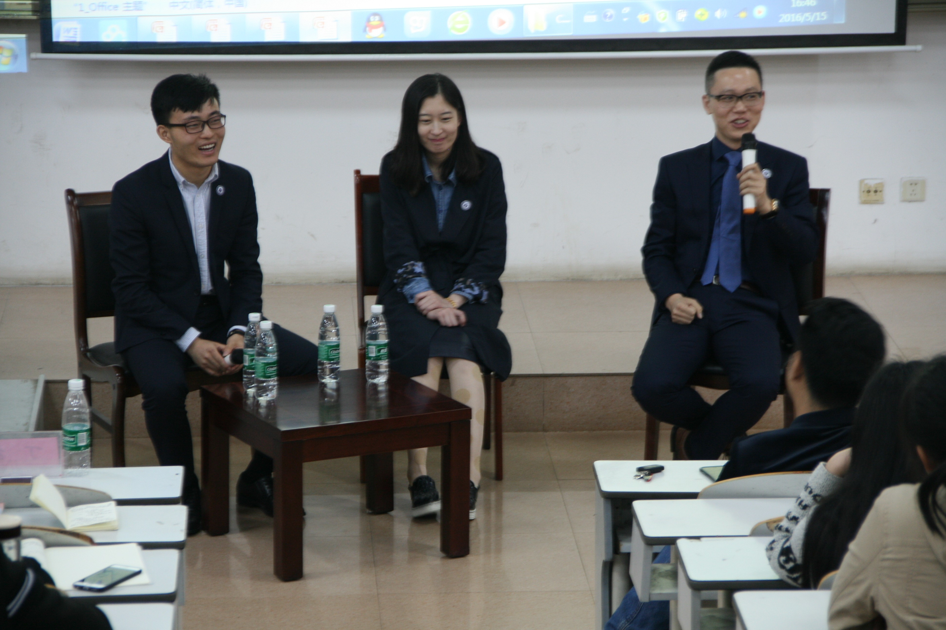 特邀请丁升、戴飞、赵广辉三位杰出校友回母校与全体同学分享他们成长、成才、成功的经验。报告会由商务英语系张涛老师主持,肉漫屋