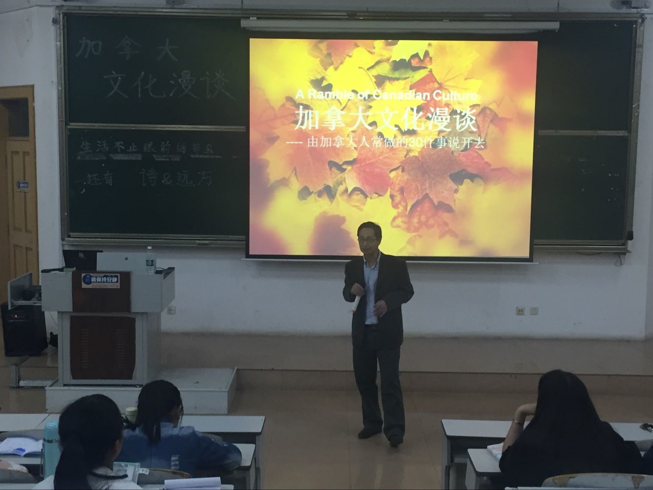 杨建华副教授主讲的“加拿大文化漫谈”讲座于2016年5月6日在E101成功举行。商务英语系张涛老师主持了报告会,对外经济贸易大学博士刘瑶老师、英语教育系高明兰老师和商务英语系同学出席了本次讲座。