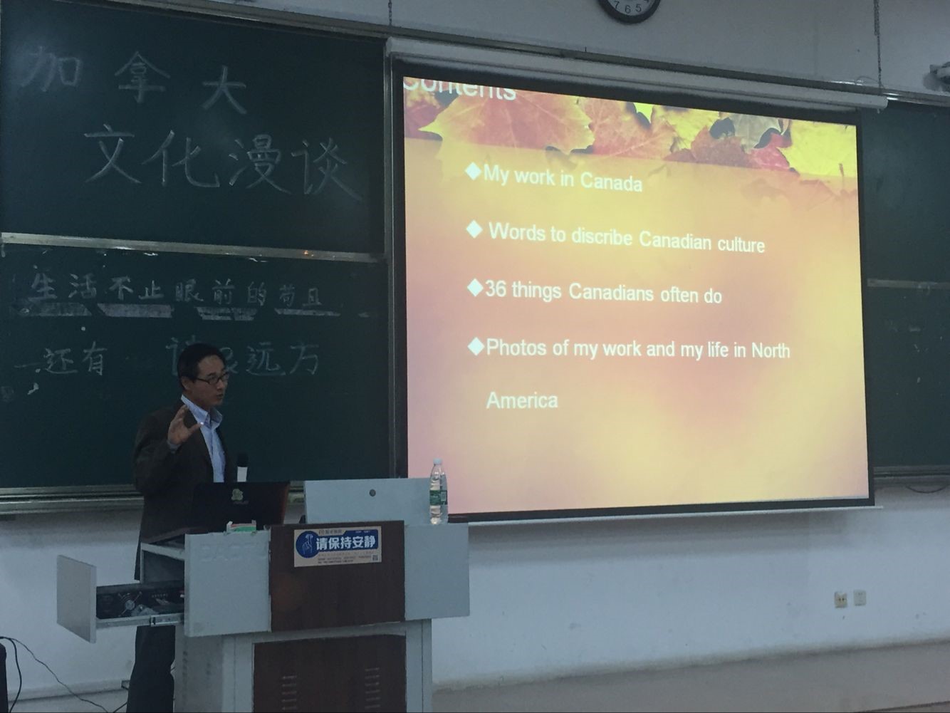 杨建华副教授以流利的英语开启了大家的加拿大之旅。在“My work in Canada”部分,杨老师简单介绍了孔子肉漫屋概况
