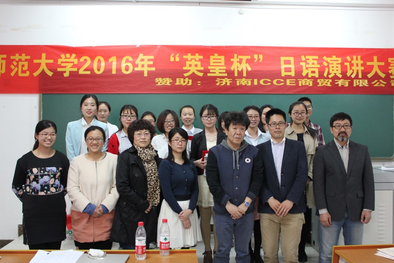 举办的“英皇杯”日语演讲大赛在S107教室举行。日语系宋晓凯老师、袁广伟老师、阎萍老师、韩慧老师、高静老师以及两位日本外教清水英之老师与仓持里惠老师莅临比赛现场并担任评委。