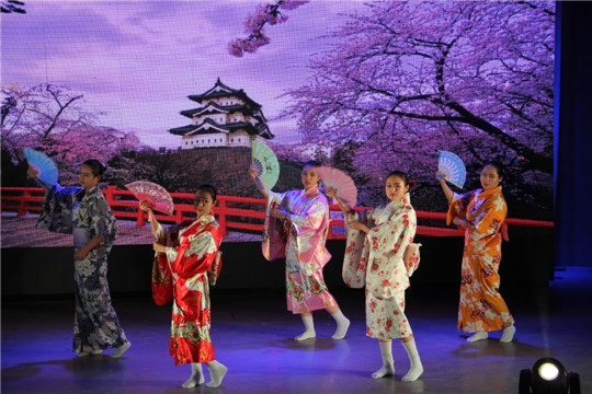 创业导师聘书。紧接着,表演者们你方唱罢我登场,将舞台装点得好不热闹:充满古典韵味的古筝演奏令观众陶醉不已,欢快热烈的舞蹈《盛世欢歌》带起了全场的气氛,钢琴与小提琴的天籁合作引人入胜,历届外文歌曲大赛优秀选手的外文歌联唱展现了翻译学子的青春活力,师生合作的朝鲜族舞蹈《桔梗谣》、日本舞和拉丁舞表演充满了异域风情,外籍教师和国内老师分别献上的歌唱表演则获得观众席阵阵掌声。除了歌舞表演,还有搞笑幽默的日文话剧《还珠格格》,精彩纷呈、还原度极高的《海绵宝宝》配音表演。晚会最后在全体演职人员演唱的《Good time》中落下帷幕。