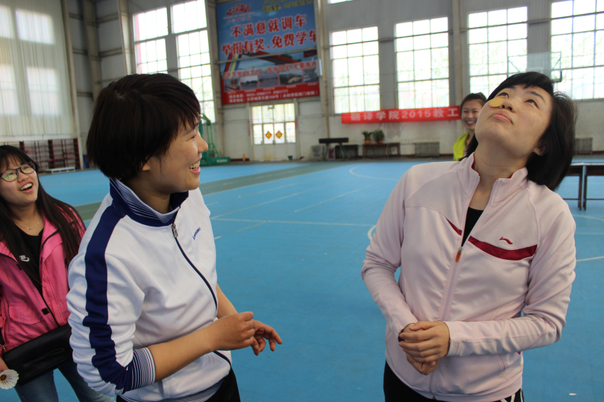 2015年教工趣味运动会于日照校区体育馆举行。活动由学院分工会主席徐凤主持,学院全体教职工、外籍教师及部分教师家属、孩子参加了此次活动。