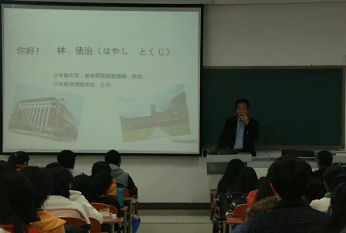 旨在提高我院学子对日语的学习热情,了解日本高校文化。2015年3月25日下午2:30,日本立命馆大学林德治教授指导讲座于我校s107教室拉开帷幕。日本立命馆大学教授、日本教育情报学会会长林德治先生莅临指导,担任本次讲座的主讲人。我院13、14级日语专业全体学生参加了此次讲座。