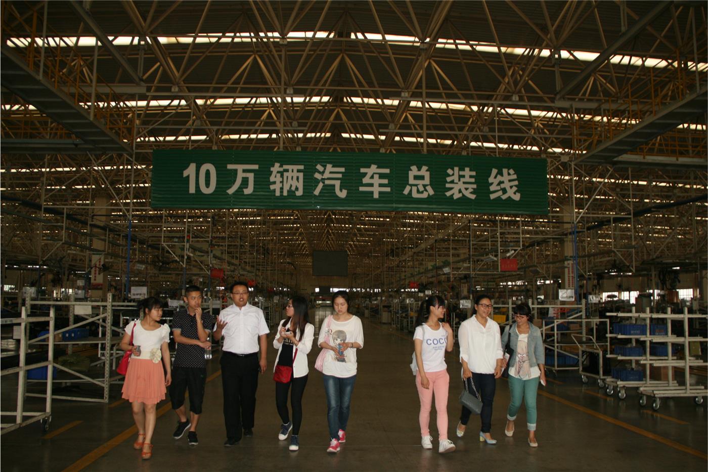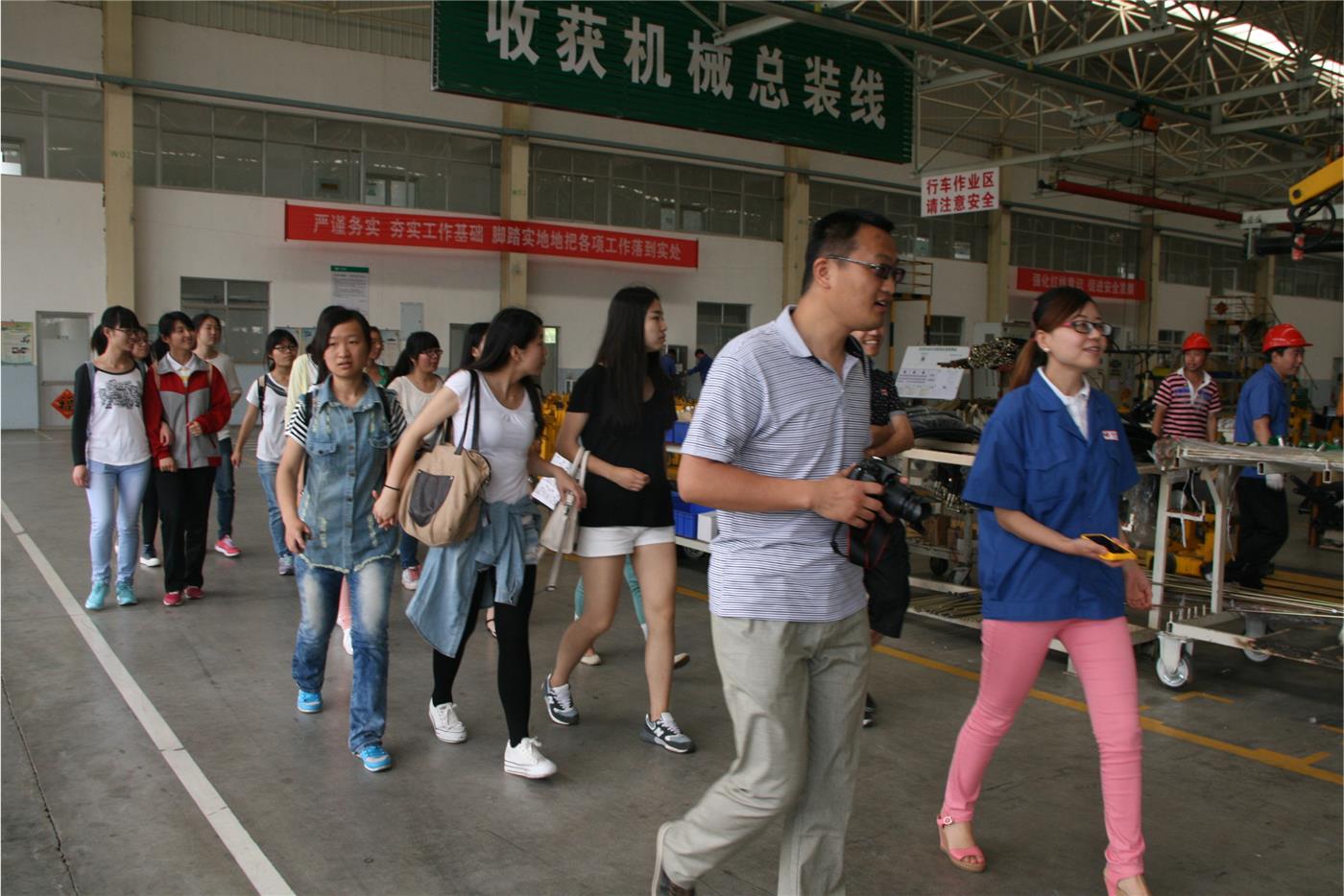 本次活动涵盖“了解企业发展史”、“参观车间”、“专题座谈”三个环节。活动伊始,在“五征集团”讲解员的带领下,师生们参观了“五征商务会展中心”,全面了解了“五征集团”的艰苦创业、发展阶段、企业转型、技术创新、市场营销和公益赞助等业绩。随后,同学们在汽车事业部生产部主任季本勃的引领下参观了装配车间——10万辆汽车总装线。装配车间全部采用国际先进的流水线作业,并配有安全自动报警系统和专门质检人员,以保证生产安全与质量。在焊接车间、涂装车间、收获机械总装线、结构件车间、冲压车间里,师生们亲眼目睹了全自动化电脑控制的机械手作业流程。