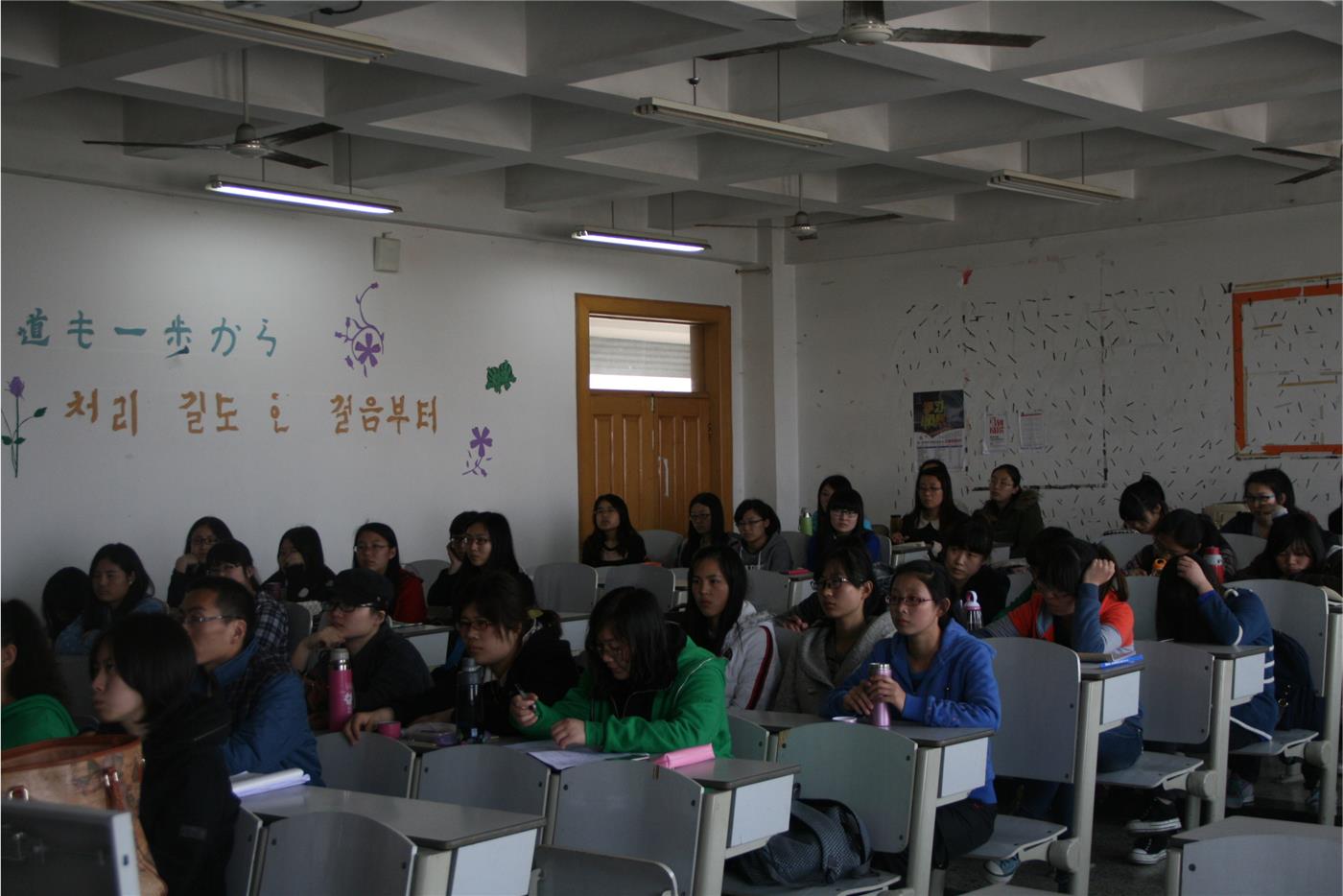 日语系主任阎萍副教授出席了本次会议,日语系大三全体学生及大一大二部分学生参加了会议。