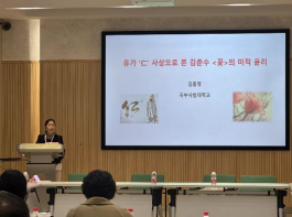 大会分设多个论坛,围绕新文科背景下的韩国语教育、韩国文学与跨文化研究、中韩双向翻译、课程思政与教材改革,以及中韩人文交流与区域国别研究等议题展开深入讨论。金红英老师在分论坛宣读了论文《儒家“仁”思想视角下金春洙〈花〉的美学伦理研究》,并与与会专家深入探讨了韩语专业的未来发展。