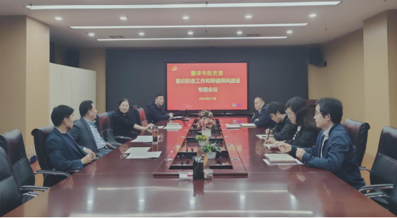 党委意识形态工作和师德师风建设专题会议。学院党委书记宋钧文主持,学院党委委员、特约纪检监督员、各支部书记到会参加。