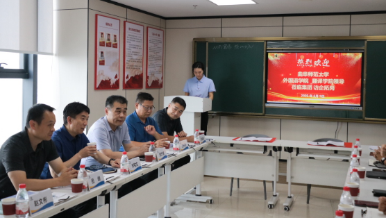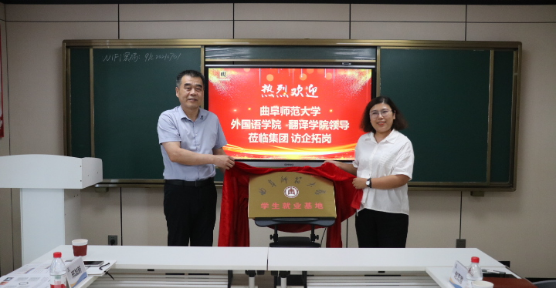 的办学历史、学科特色及人才培养成效,集团人才委副总裁朱成玉就企业发展概况进行阐述。外国语学院党委副书记王作茂、副院长邢加新分别与朱成玉签署教育实习基地协议和就业基地协议,费沂涛书记与集团人才委副总裁李双共同为校企合作基地揭牌。双方就实习岗位配置、就业方向优化等议题展开深度磋商。随后,工作组赴山东恒利纺织科技有限公司、淄博万氏国际贸易有限公司、山东亿盈招商服务有限公司和智洋创新科技股份有限公司的生产基地实地调研,深入探讨外语专业人才在翻译服务及国际贸易领域的定向输送机制。