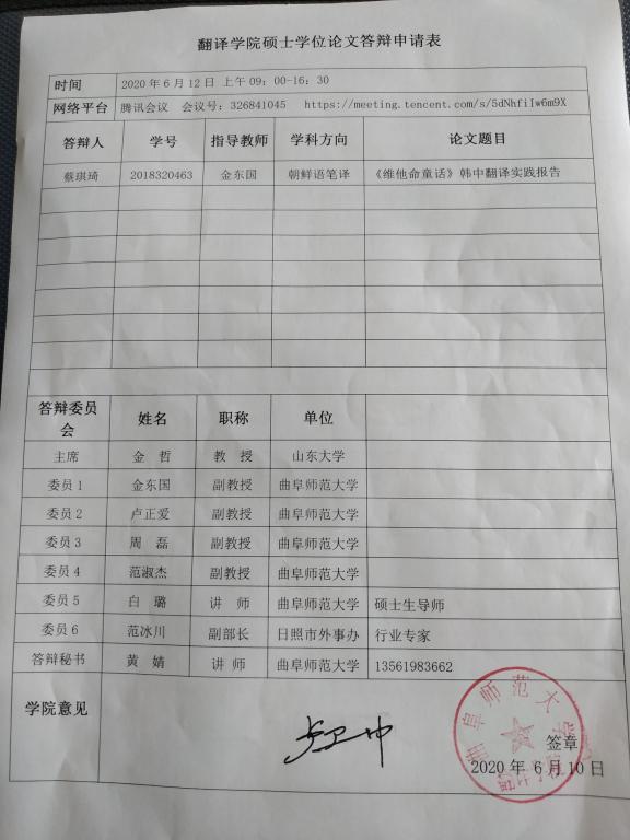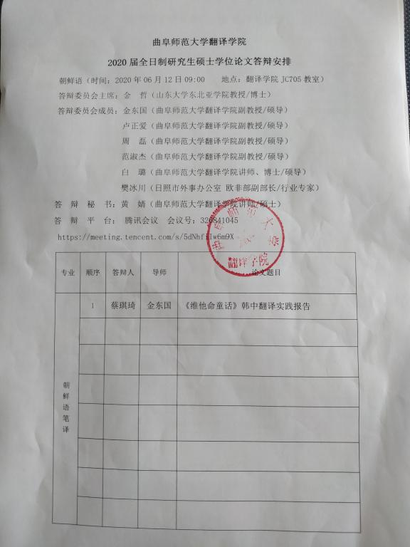 肉漫屋 2020届全日制研究生硕士学位论文答辩安排5